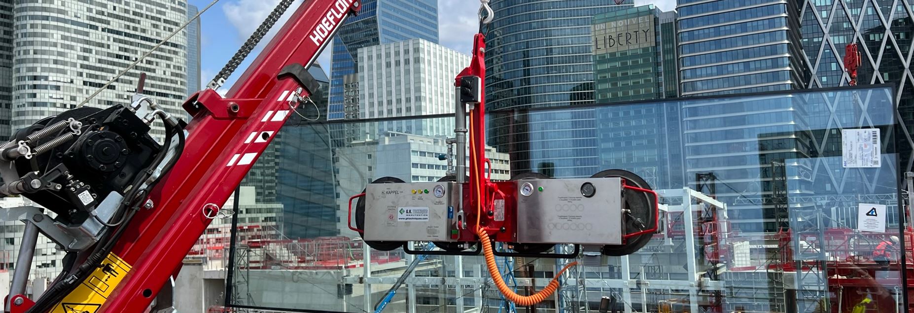 Palonnier compact mono ventouse, rotatif manuellement sur 360° et basculant sur 90°.